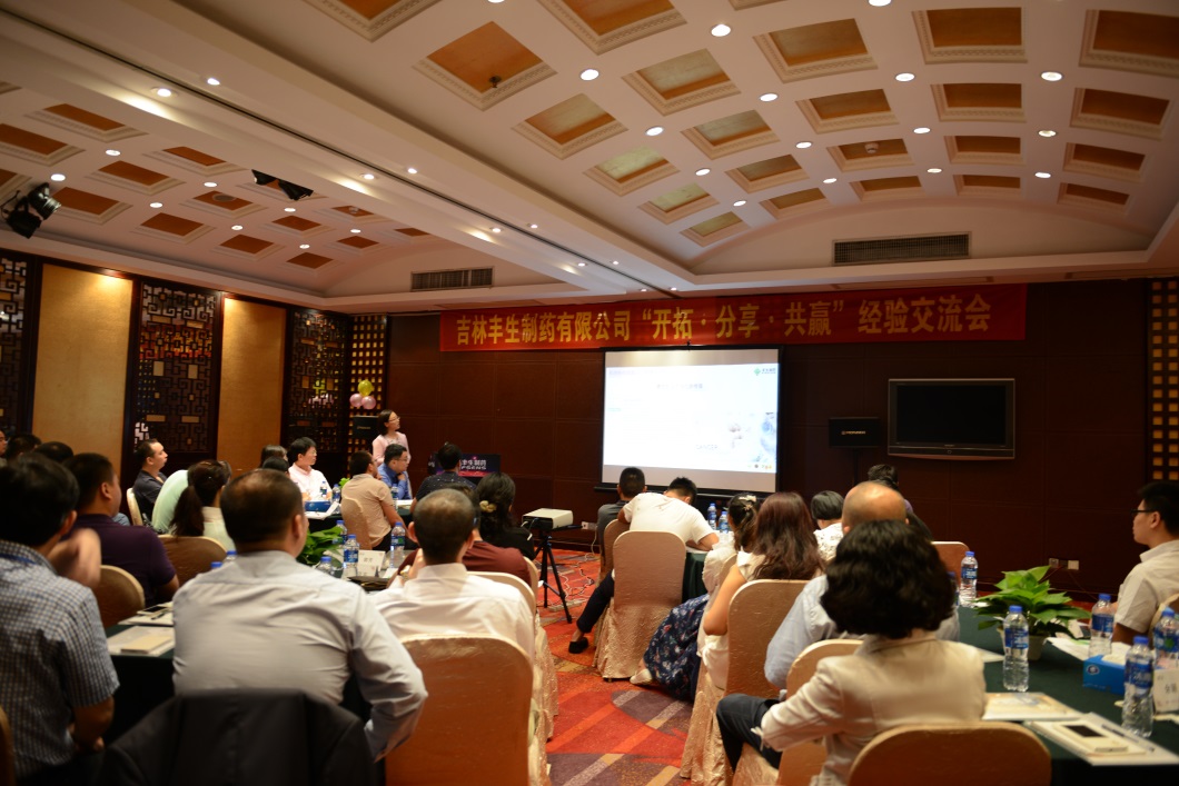 2015年7月20日,吉林丰生制药有限公司以“开拓·分享·共赢”为主题的经验交流会在深圳市上海宾馆隆重召开。出席本次会议的主要人员有公司高层领导、市场部专业人员、销售体系的省区经理及其各区域的优秀客户代表。